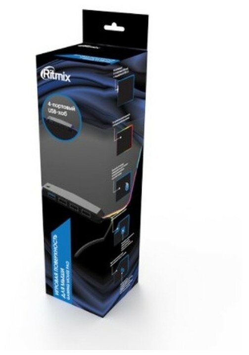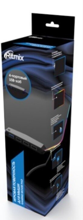 Коврик подсвет. и USB хабом 400x300x3мм, RITMIX MPD-440, для оптич. и лазер.мышей,ткань+рез.осн.1xUSB3.0+3xUSB2.0,встр.каб. USB.