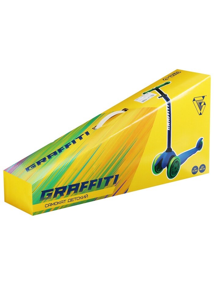Самокат GRAFFITI, колеса световые PU, 110, 75 мм, ABEC 7, цвет синий, зеленый