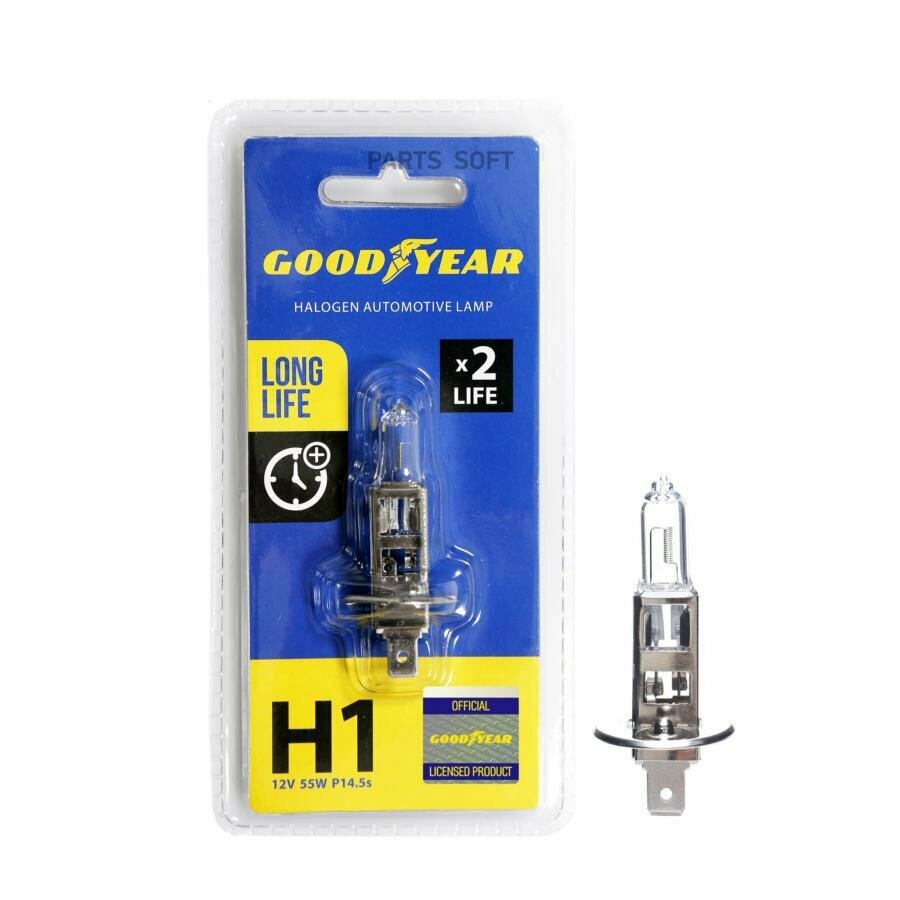Лампа 12 В H1 55 Вт Long Life галогенная блистер Goodyear GOODYEAR GY011123 | цена за 1 шт | минимальный заказ 1