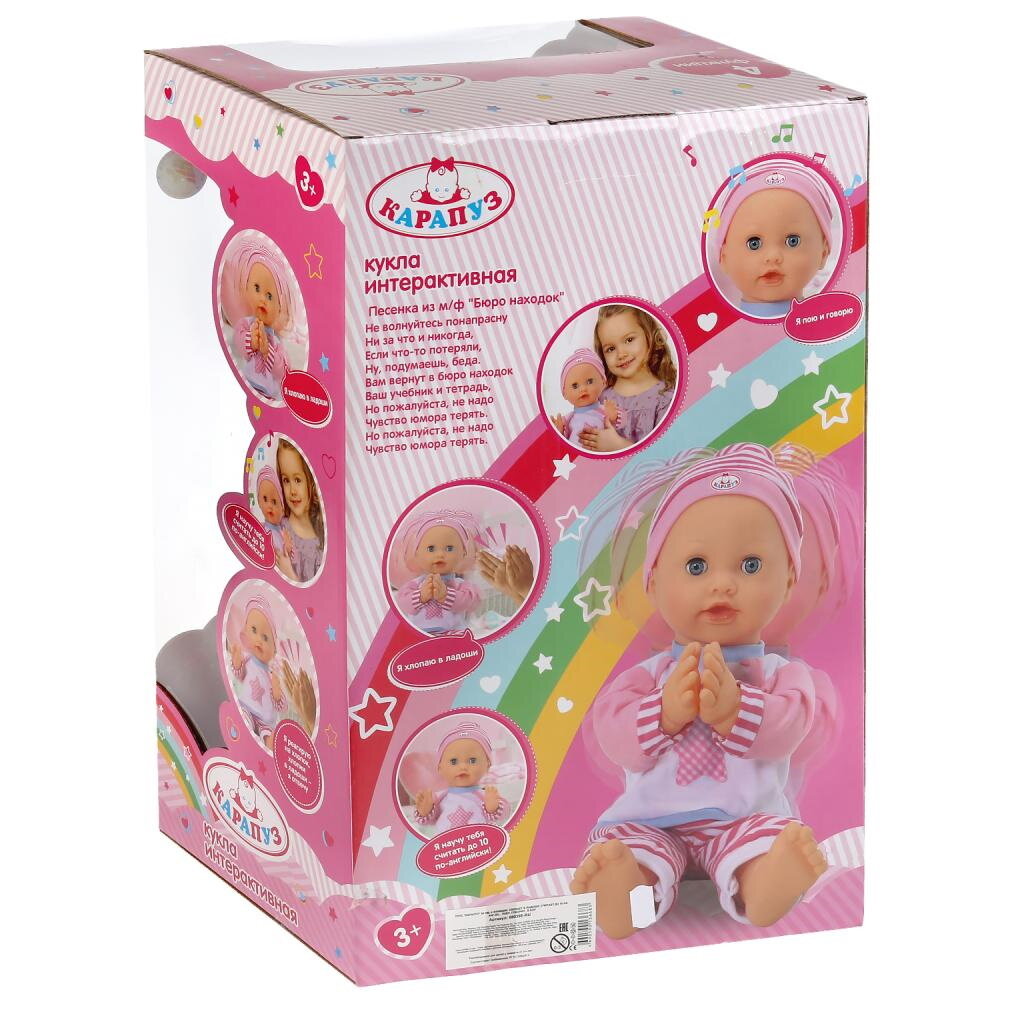 Интерактивная кукла Карапуз, 36 см, 68039E-RU разноцветный