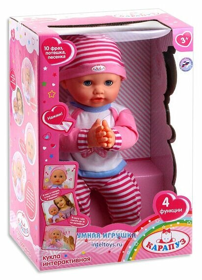 Пупс "карапуз" 36см, 4 функции., хлопает в ладоши, считает до 10 на анг. языке, в короб. (68039E-RU)