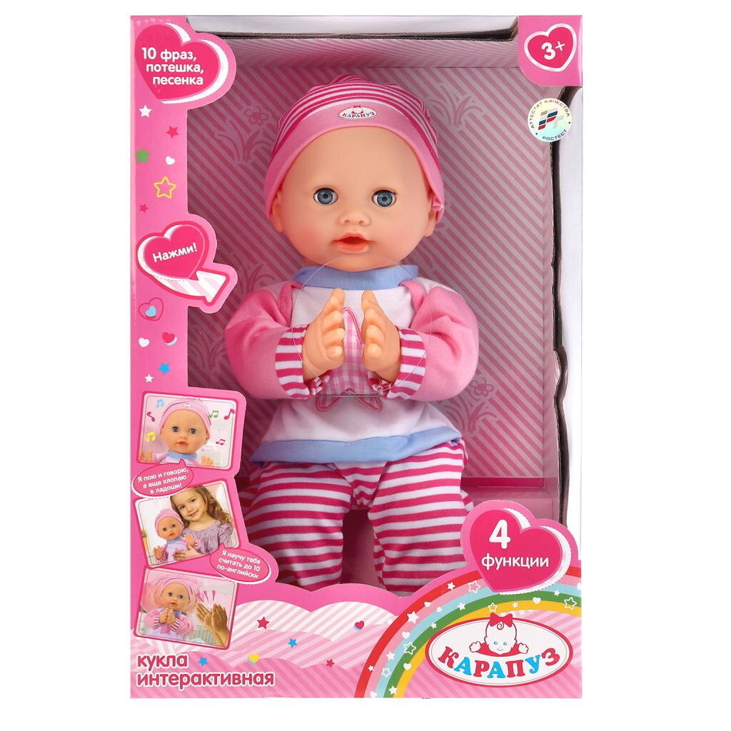 Пупс, 4 функции, хлопает в ладоши, считает до 10 на английском языке, 36 см. Карапуз 68039E-RU