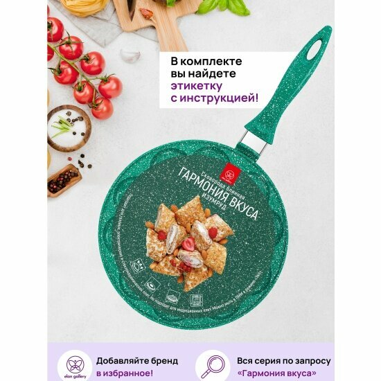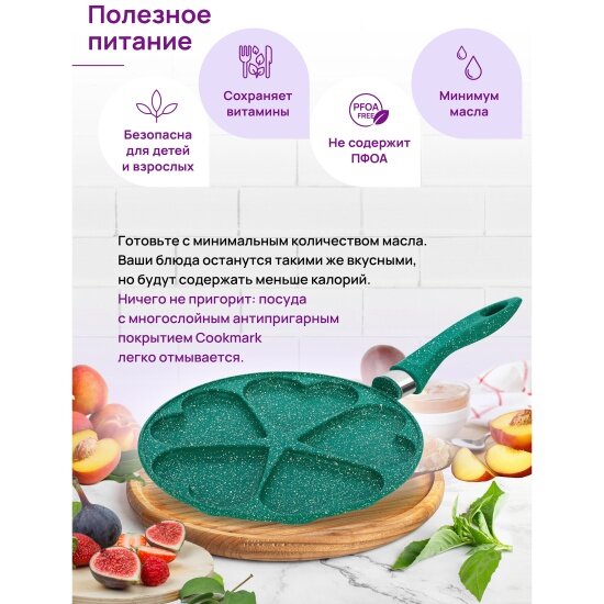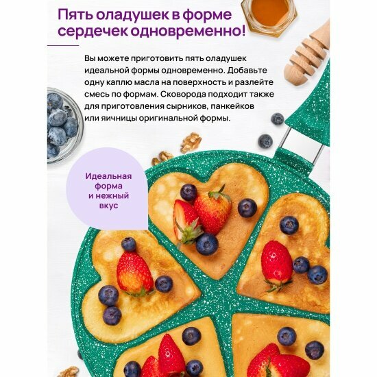 Сковорода Elan Gallery для оладий 26 см гармония вкуса "Изумруд" сердце 48*27*5,5 см интересное: