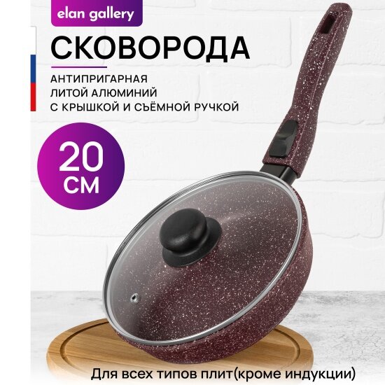 Сковорода глубокая Elan Gallery гармония вкуса Рубин, с крышкой, со съёмной ручкой, 20 см интересное: