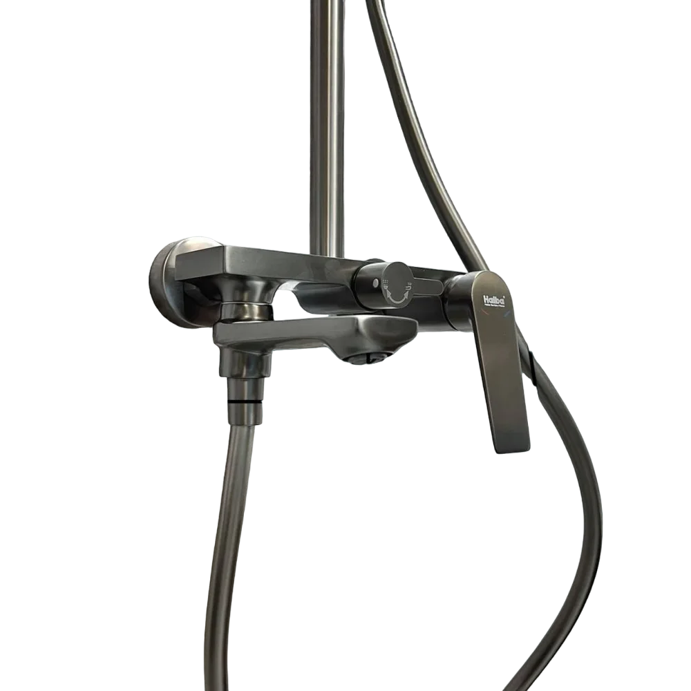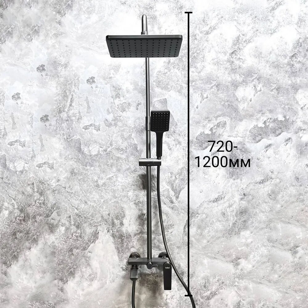 Душевая стойка c верхним тропическим душем и ручной лейкой, серая интересное:
