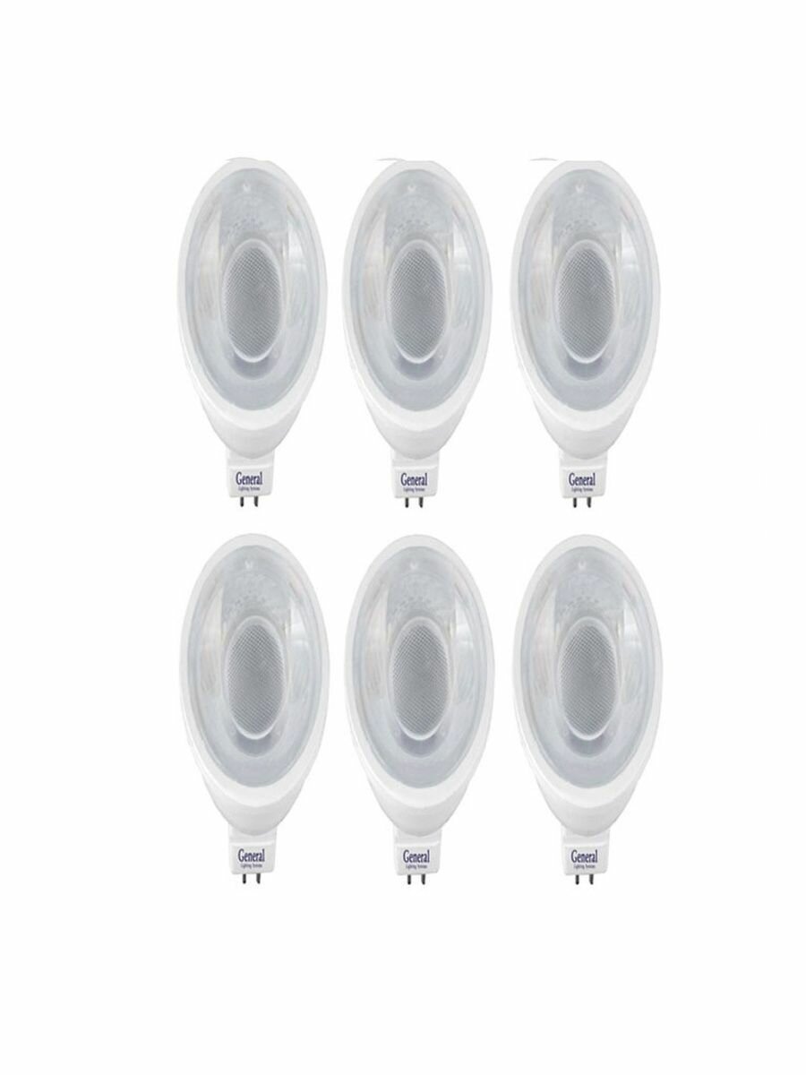 Лампочка светодиодная, General, Комплект из 6 шт, 8 Вт, Цоколь GU5.3, 6500К, Форма лампы Круг, MR16