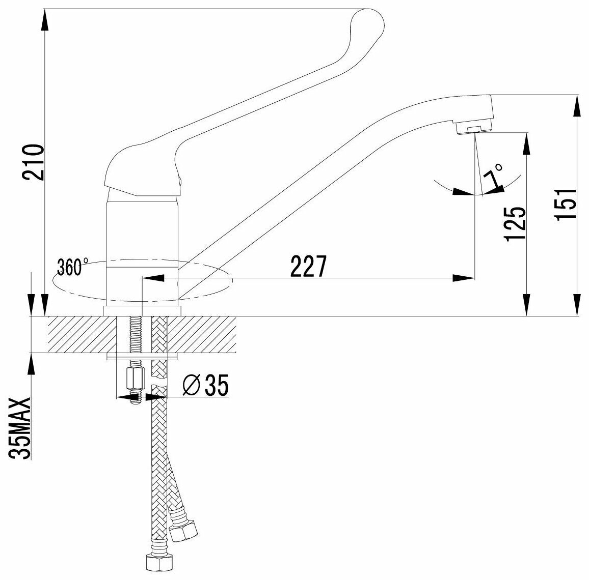 | Длина излива | 227 мм |