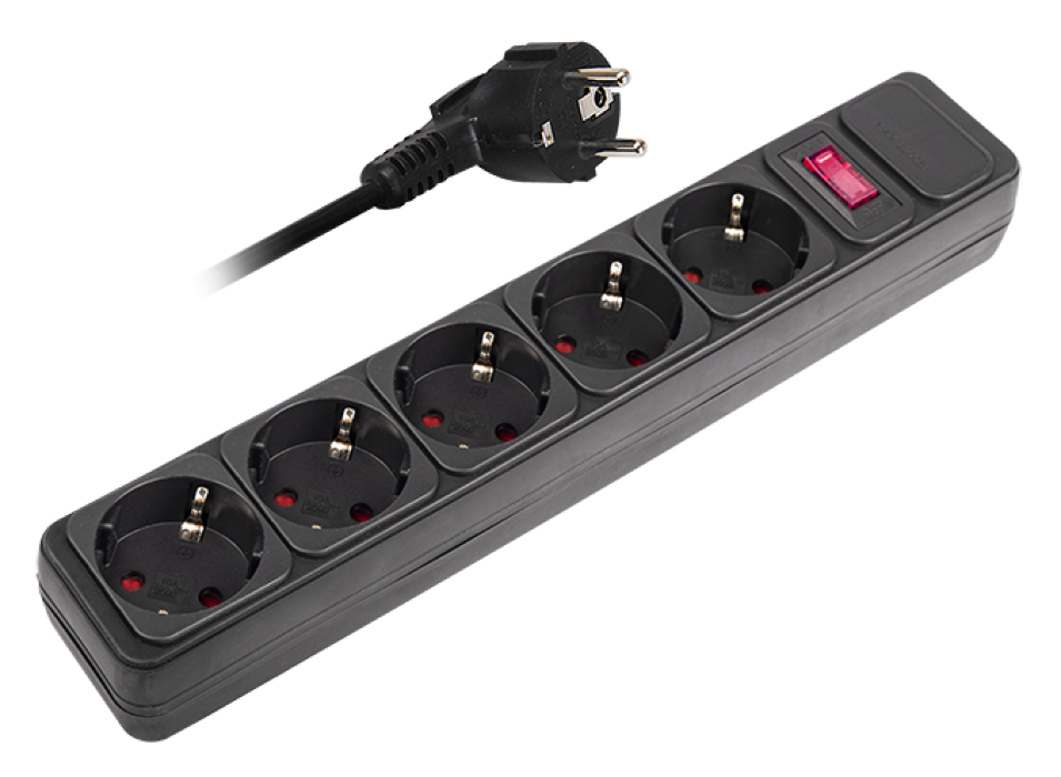 Сетевой фильтр на 5 гнёзд с выключателем на корпусе ФАZA FOP-05GS-300-bk 3м. черный