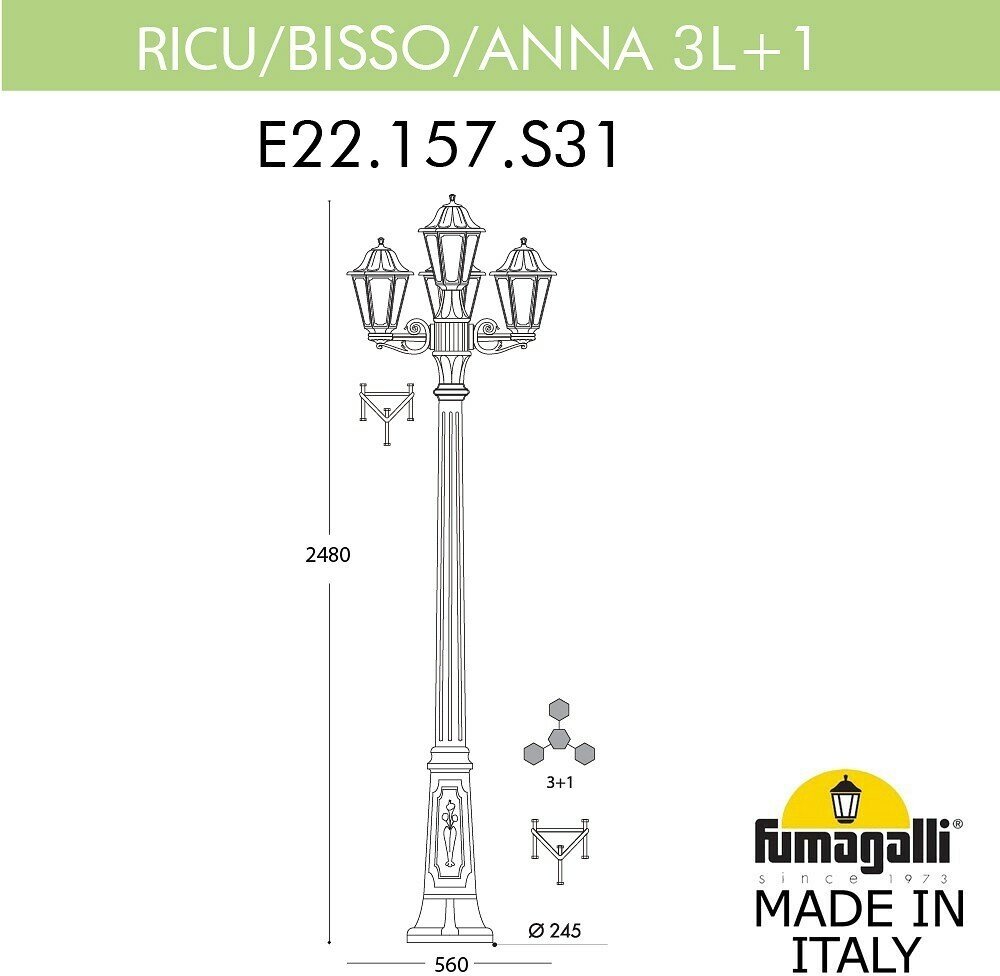 E22.157.S31.AYF1R Фонарный столб FUMAGALLI RICU BISSO/ANNA 2+1