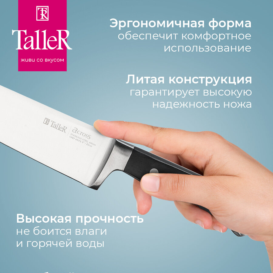 Нож кухонный поварской TalleR TR-22020 Акросс, лезвие 20 см, нержавеющая сталь интересное: