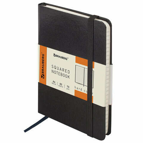 Блокнот в клетку с резинкой малый формат А6 (100x150 мм), 80 л., балакрон черный BRAUBERG "Metropolis", 111589
