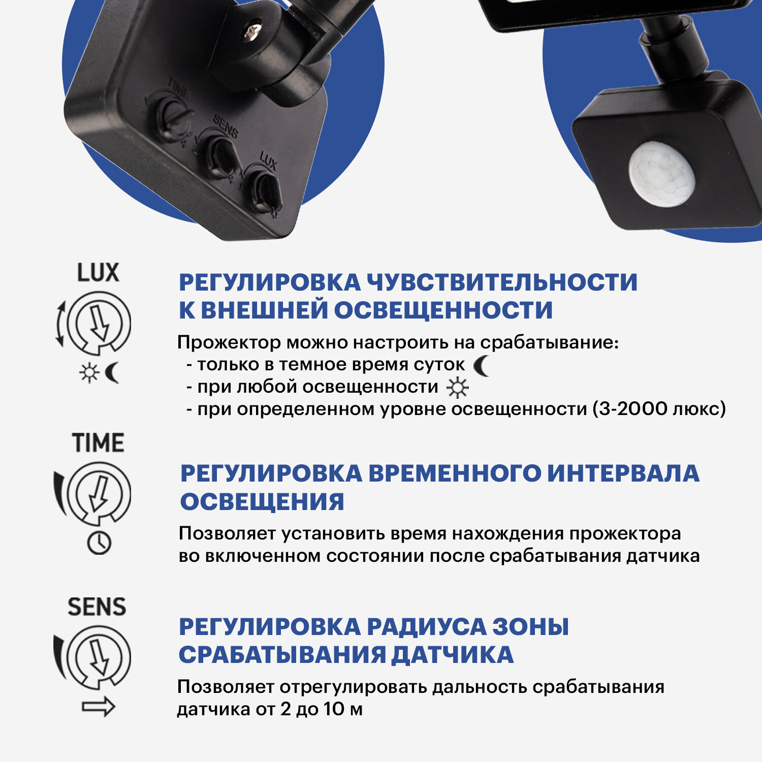 Прожектор светодиодный с датчиком движения 50 Вт 200260В IP44 4000 лм 6500 K холодный свет Rexant 6 .