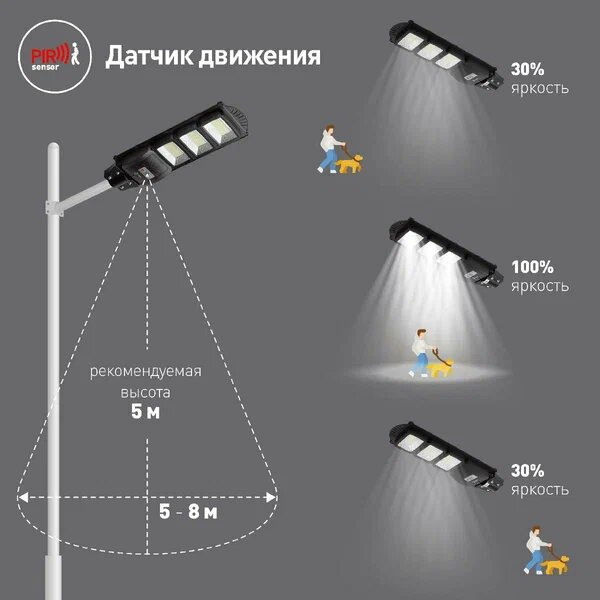 Консольный светильник на солнечной батарее с кронштейном, 40W, с датчиком движения, ПДУ