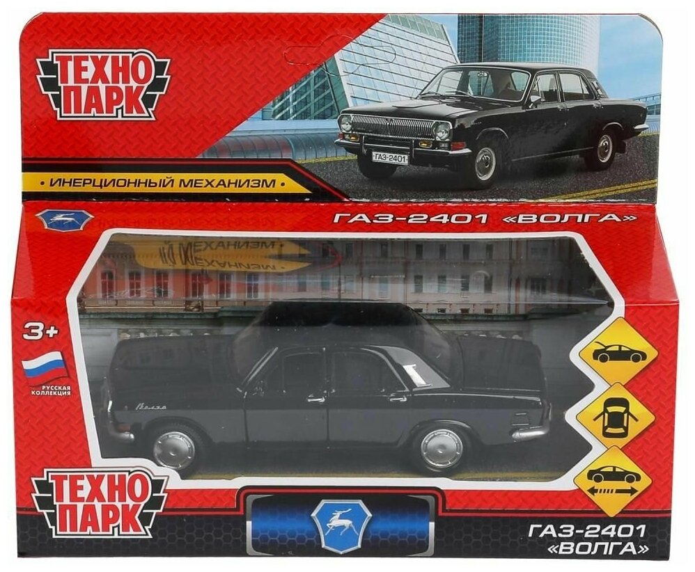 Технопарк 2401-12-BK 299335 Машина металл ГАЗ-2401 волга длина 12 см, двери, багаж, инерц, черный, кор. Техноп