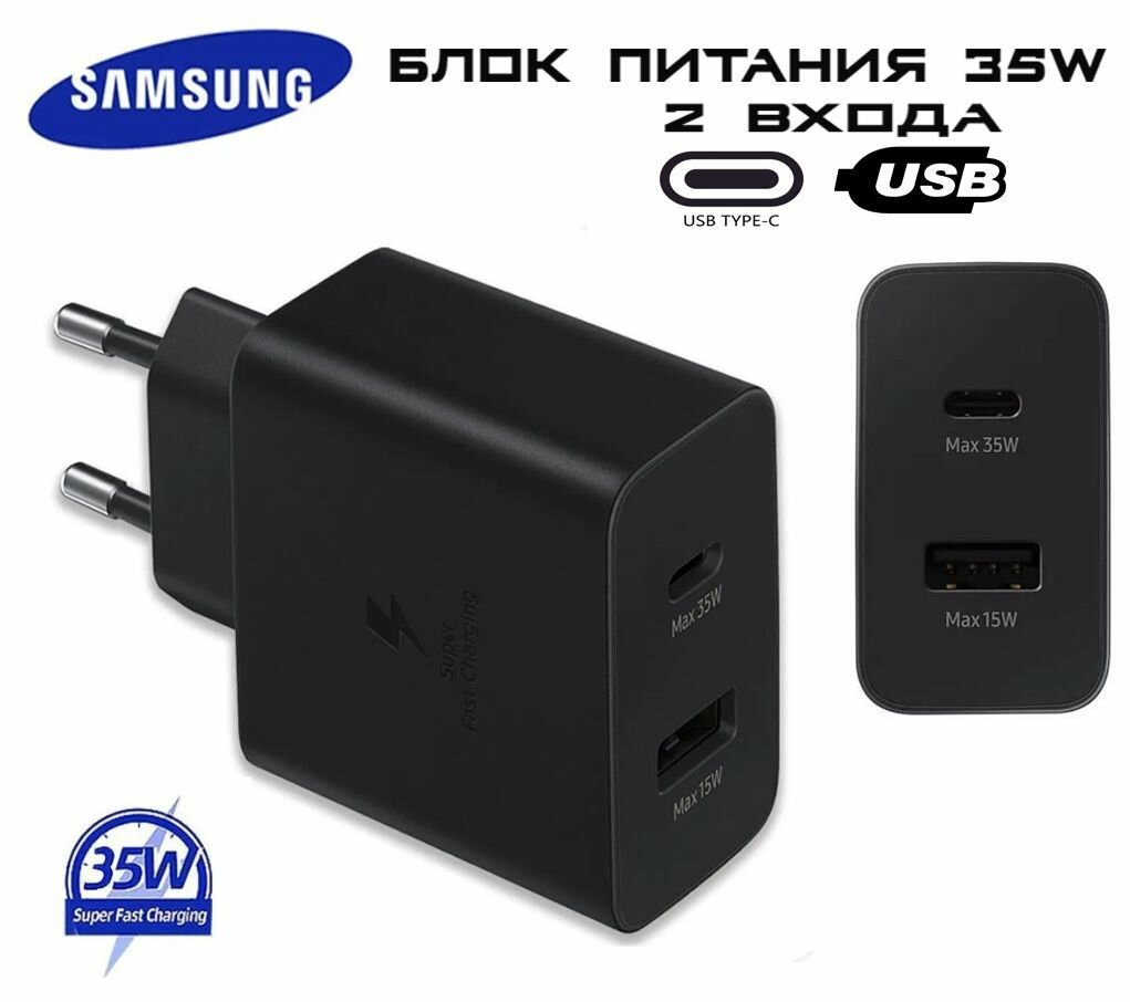Купить Зарядное устройство 35W Super fast charging Samsung EP-TA220 на два выходных порта/ Сетевой адаптер Самсунг 35вт, черный