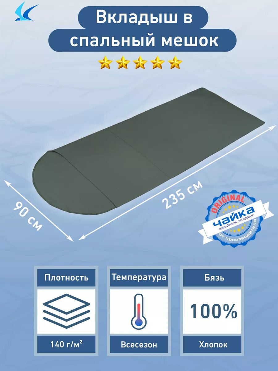 Вкладыш для спальника "Чайка", туристический 235x90 см, бязь, 100% Хлопок интересное: