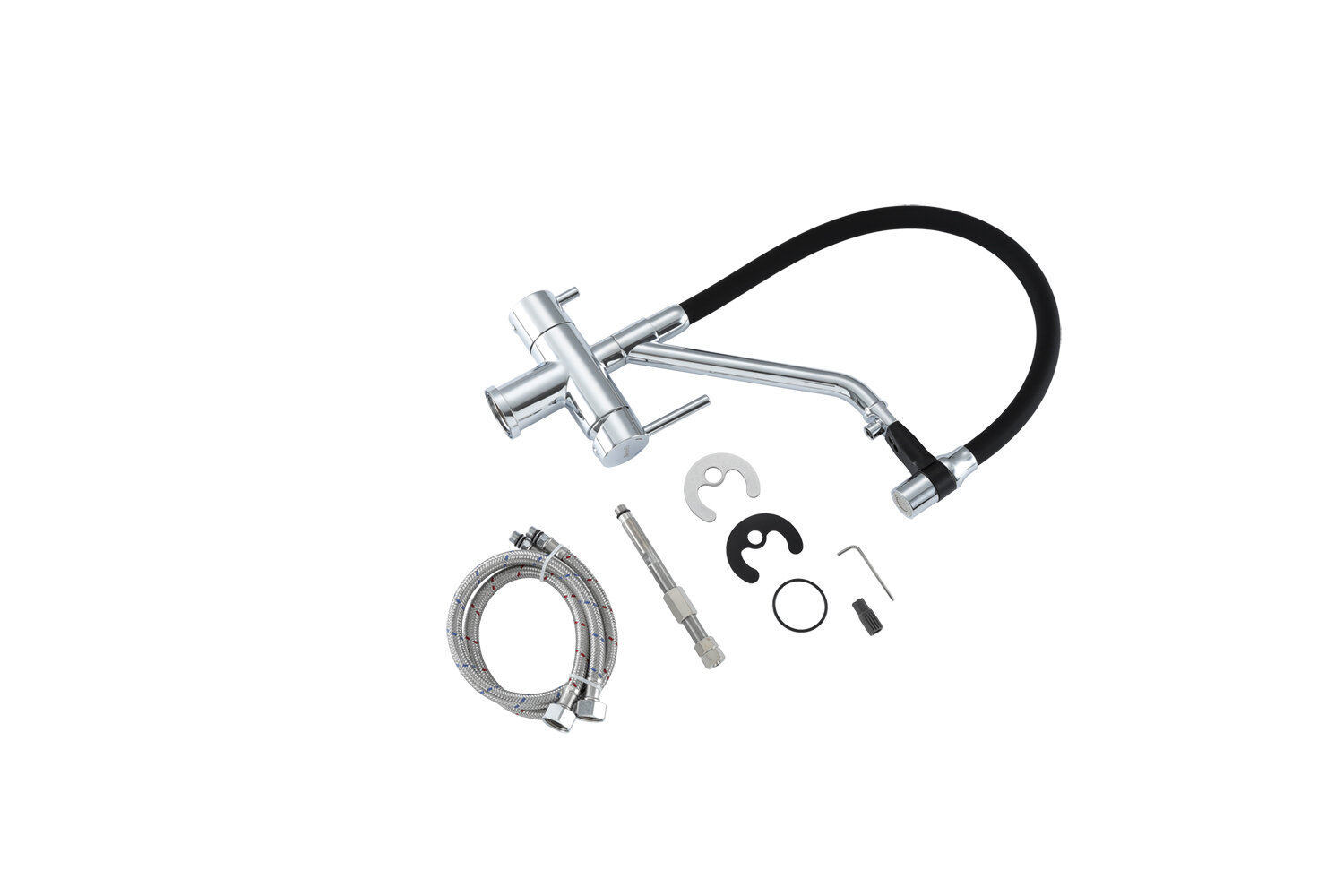 | Комплектация | смеситель - 1 шт; Гибкая подводка - 2 шт; монтажный комплект - 1 |