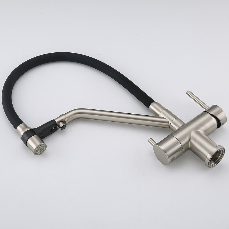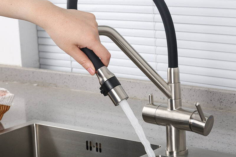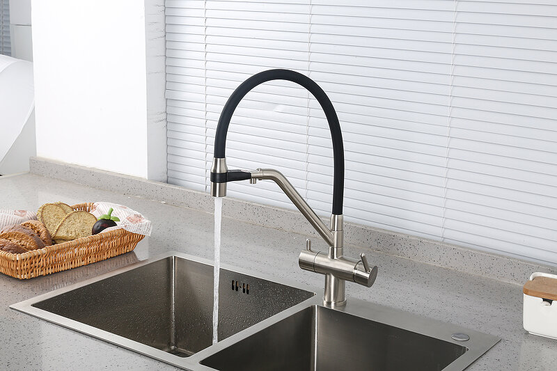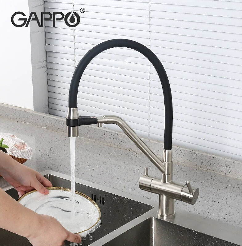 Смеситель для кухонной мойки Gappo G98-66 G4398-66 с гибким, выдвижным изливом и подключением фильтра питьевой воды, черный