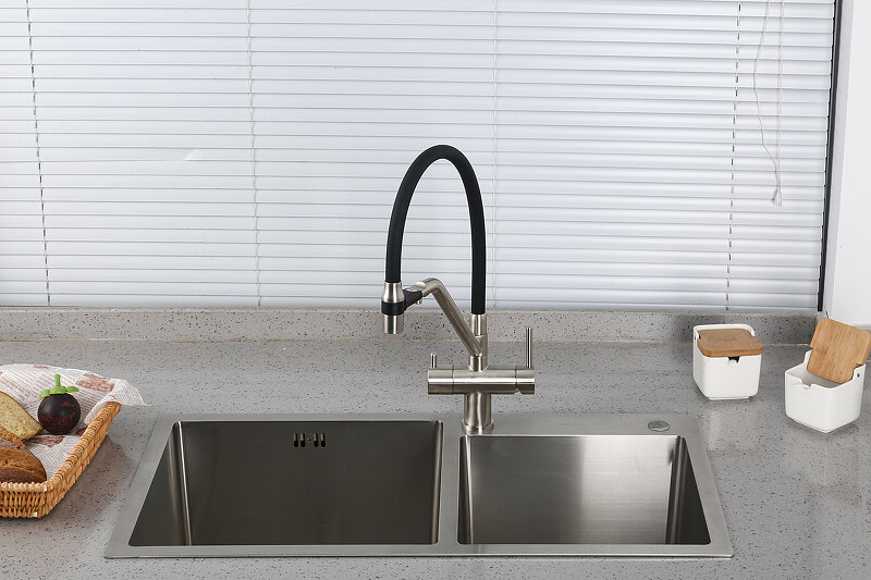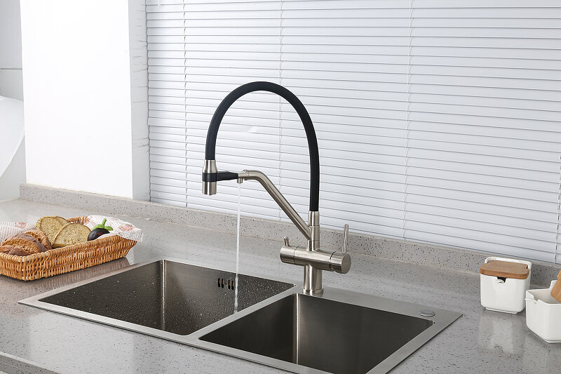 Смеситель для кухонной мойки Gappo G98-85 G4398-85 с гибким изливом и подключением фильтра питьевой воды, сатин, черный