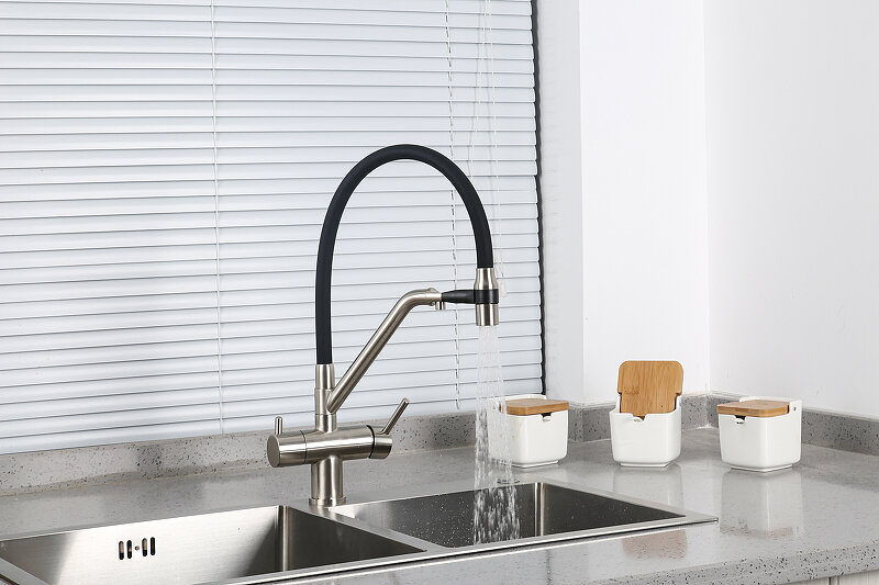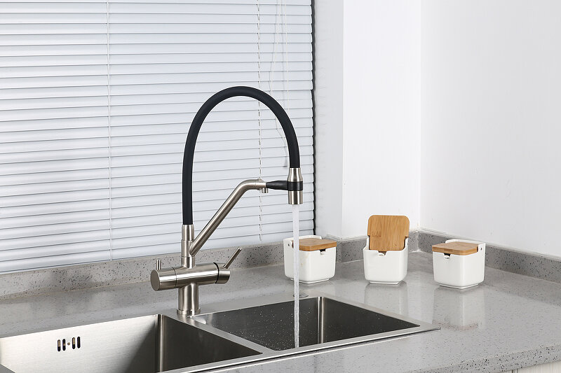 Смеситель для кухни Gappo G4398-66 с подключением фильтра питьевой воды, гибкий излив, черный
