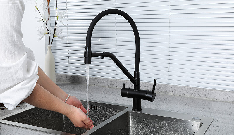 Смеситель для кухонной мойки Gappo G98-66 G4398-66 с гибким, выдвижным изливом и подключением фильтра питьевой воды, черный