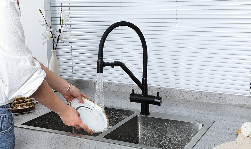 Смеситель для кухни Gappo G4398-66 с подключением фильтра питьевой воды, гибкий излив, черный