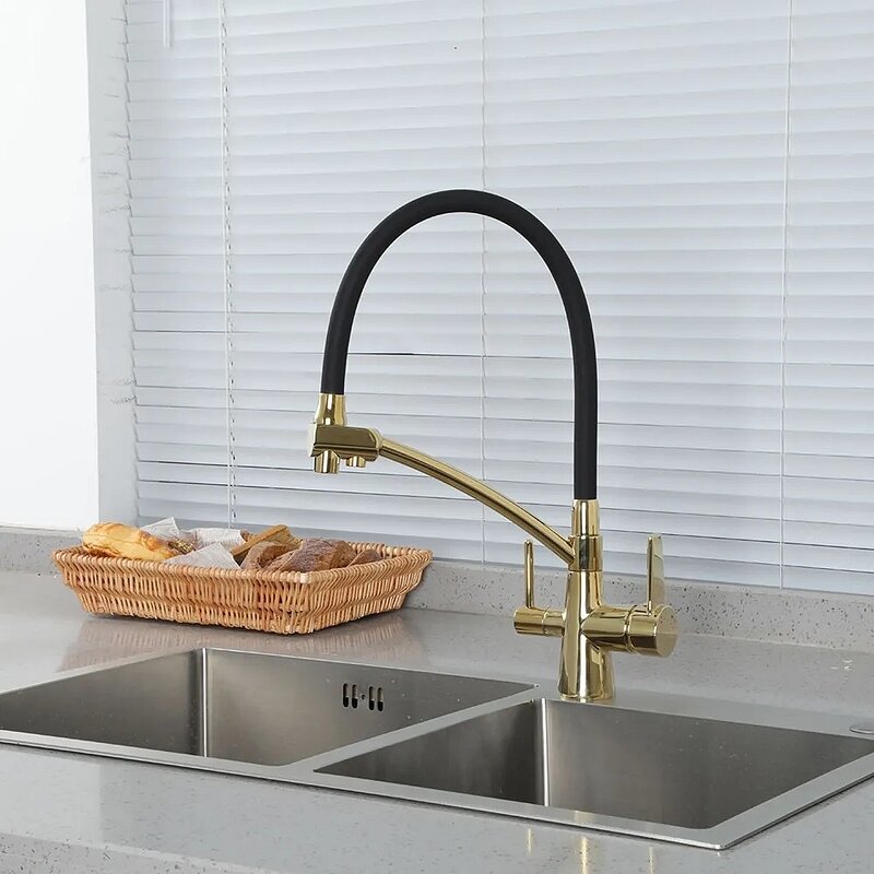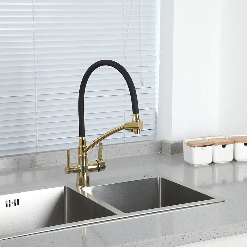 Смеситель для кухонной мойки Gappo G98-83 G4398-83 с гибким изливом и подключением фильтра питьевой воды, золото, черный