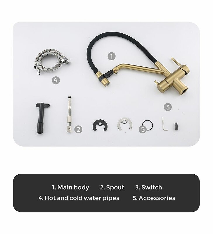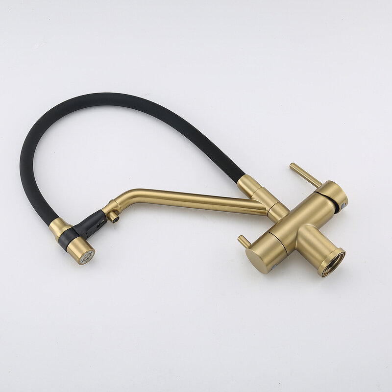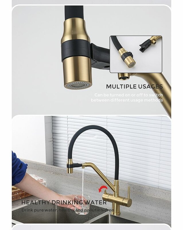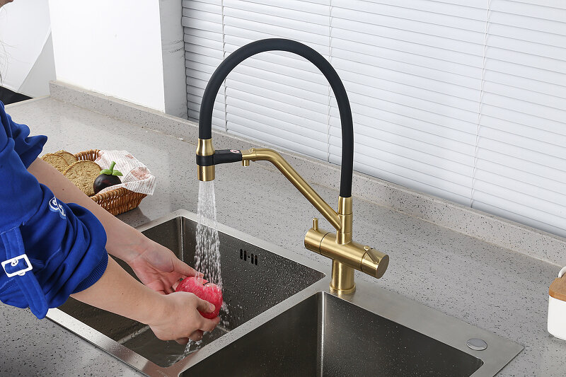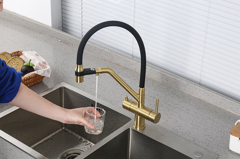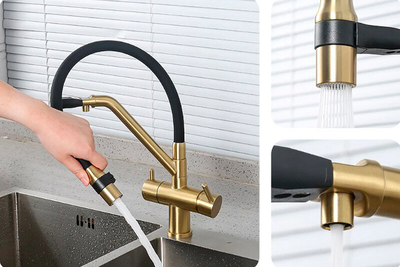 Смеситель для кухонной мойки Gappo G98-83 G4398-83 с гибким изливом и подключением фильтра питьевой воды, золото, черный