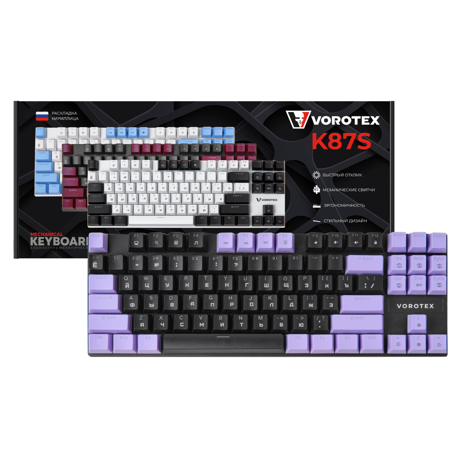 Клавиатура игровая проводная VOROTEX K87S Blue Switch, русская раскладка (Чёрный, фиолетовый)