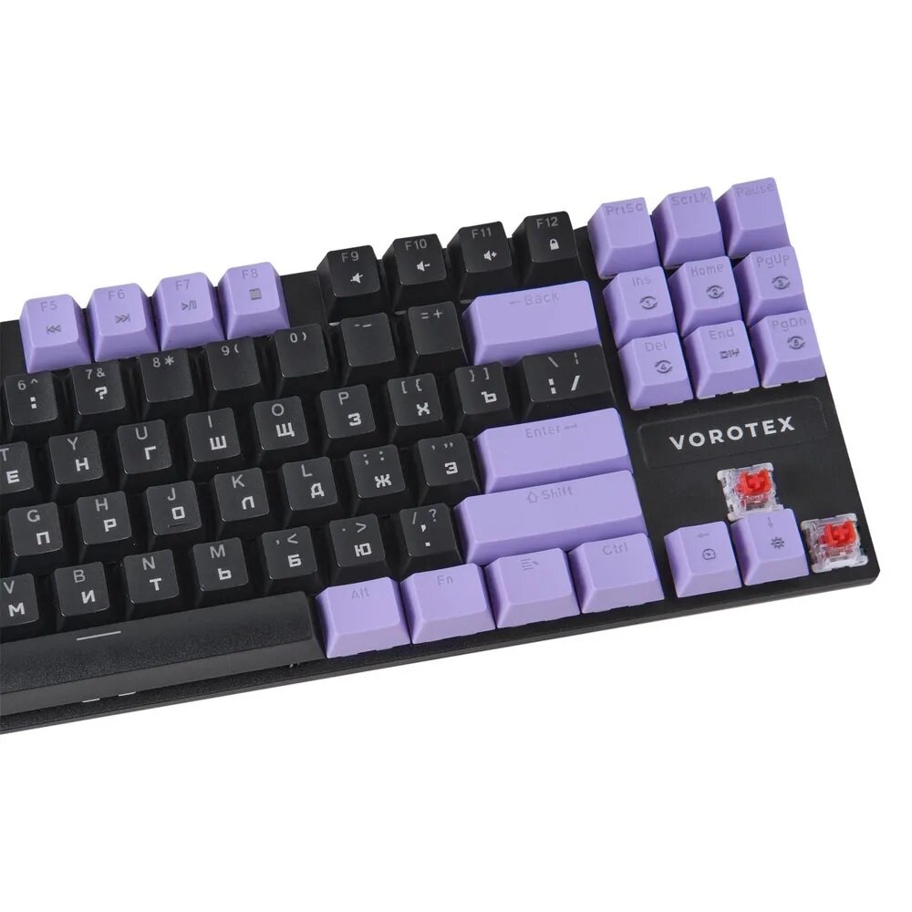 Клавиатура игровая проводная VOROTEX K87S Red Switch, русская раскладка (Чёрный,фиолетовый)