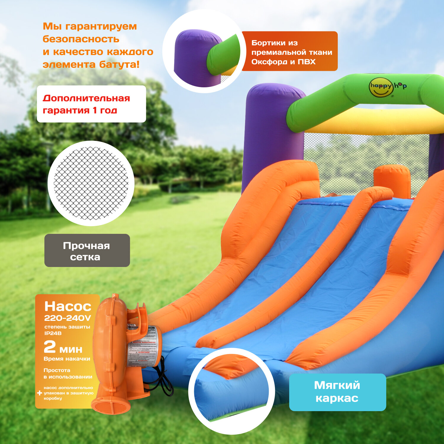 Ниже Вы можете прочитать отзывы на Детский Надувной батут для дома и улицы Happy Hop "Полоса с препятствиями" с горкой, с защитной сеткой, 560х255х190 см, ознакомится с подробными характеристиками, посмотреть интересные обзоры и фотографии на Детский Надувной батут для дома и улицы Happy Hop "Полоса с препятствиями" с горкой, с защитной сеткой, 560х255х190 см.