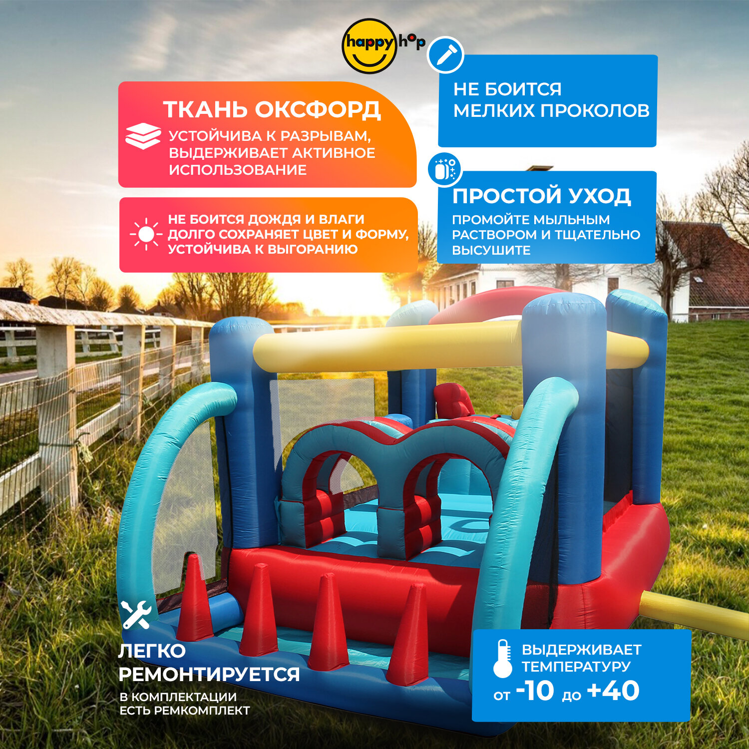Купить Детский Надувной батут для дома и улицы Happy Hop "Неожиданные препятствия", с горкой, с защитной сеткой, 530х250х215 см