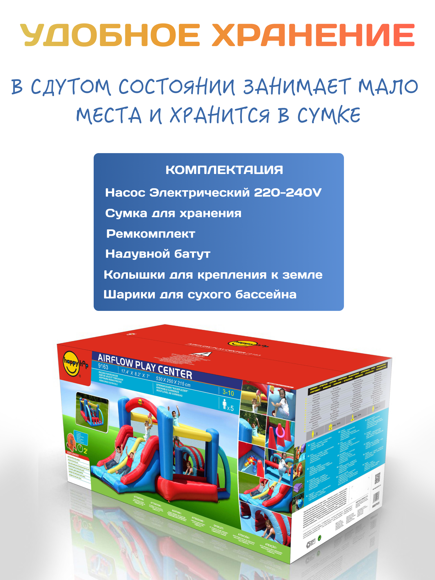 СохранитьДетский Надувной батут для дома и улицы Happy Hop "Неожиданные препятствия", с горкой, с защитной сеткой, 530х250х215 см интересное: