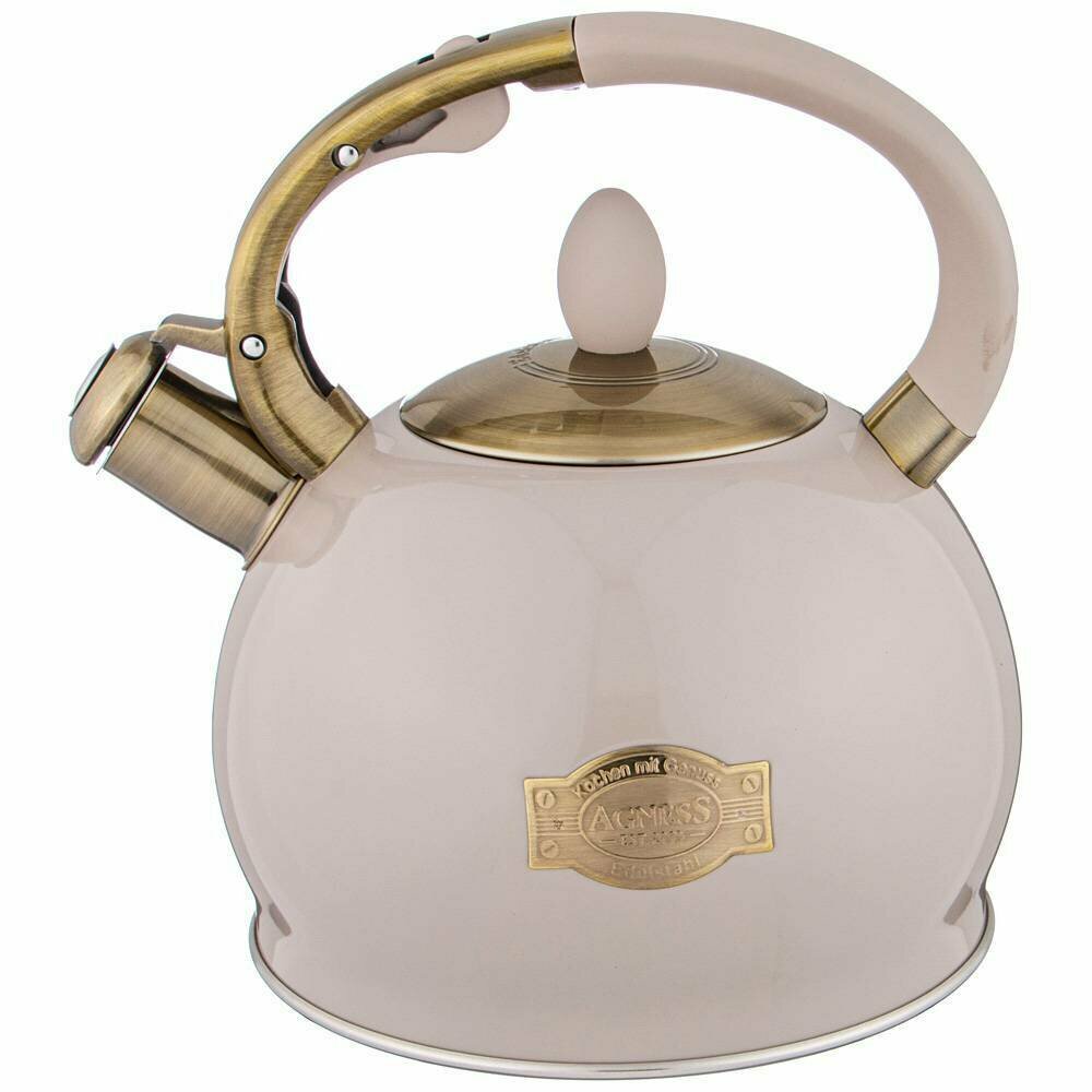 Чайник Agness "Тюдор", со свистком, 3л, индукционное капсульное дно, для всех видов плит