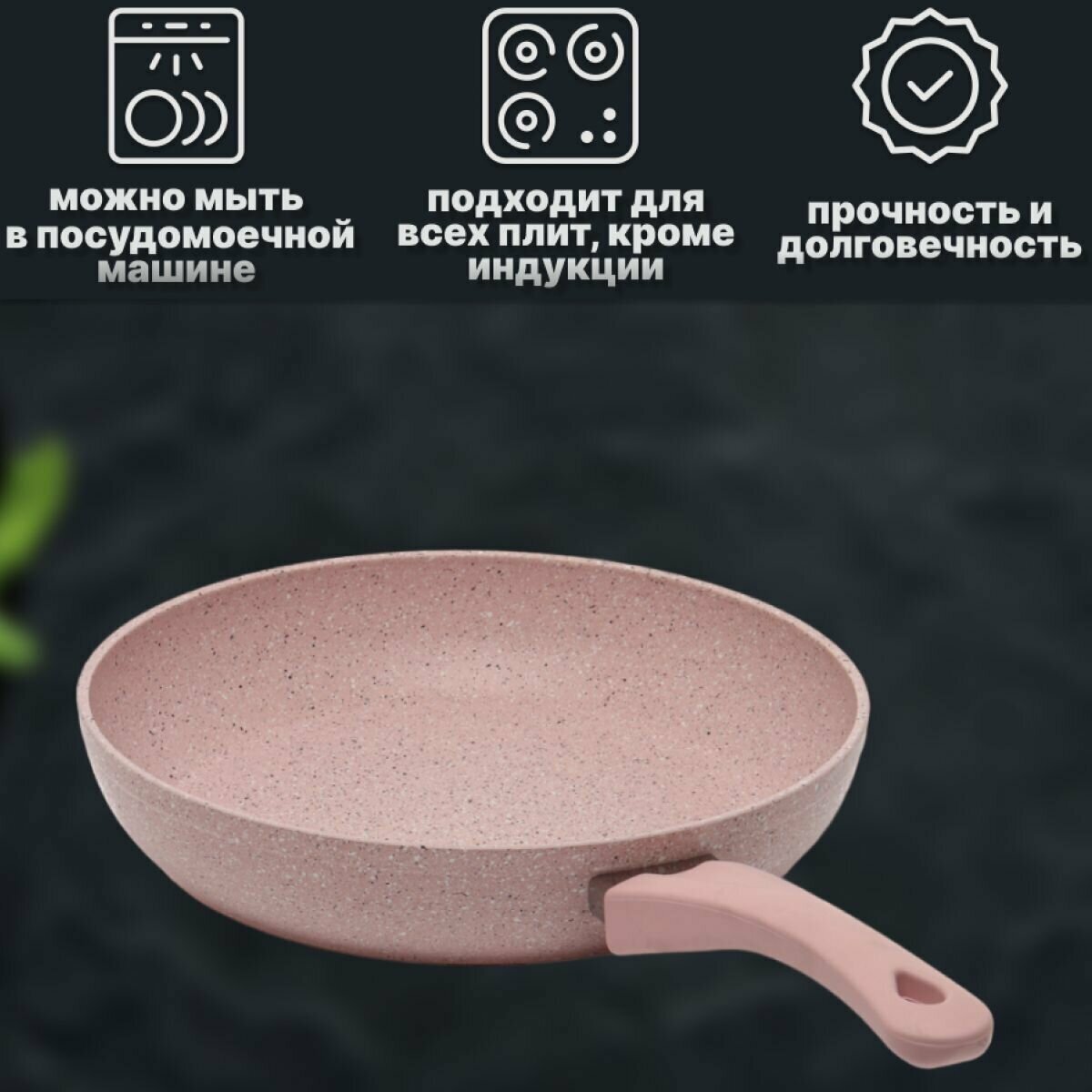 Сковорода 28 см с антипригарным покрытием. 3 л. Цвет: розовый. O.M.S. Collection. интересное: