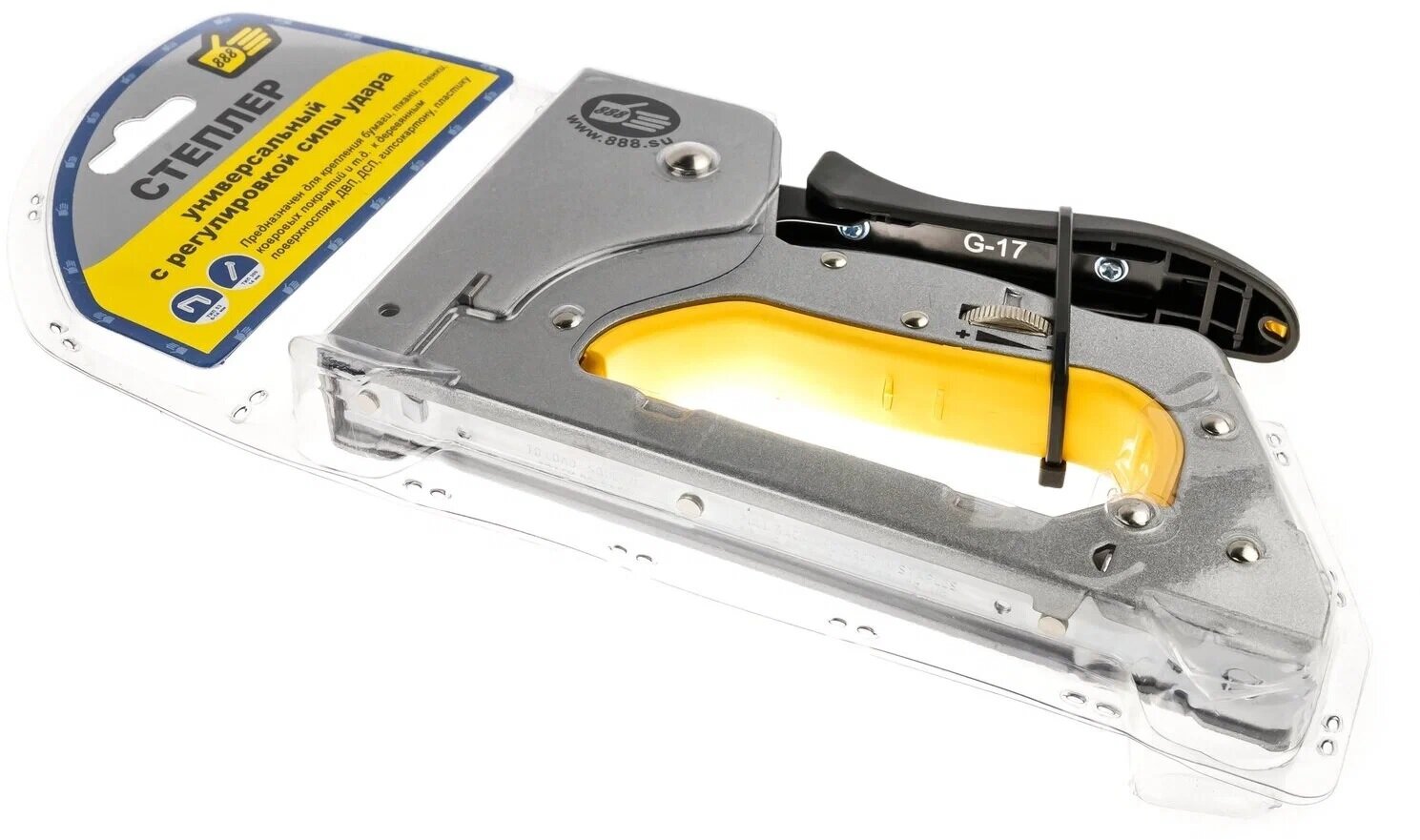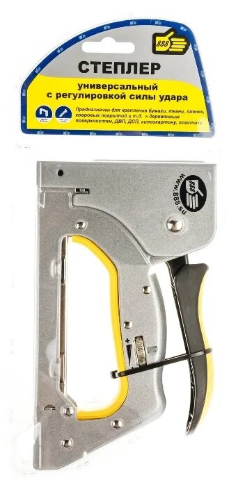 Степлер 4-14мм, регулируемый, металл. с резиновыми вставками - скоба 53, гвоздь 300 "888" интересное: