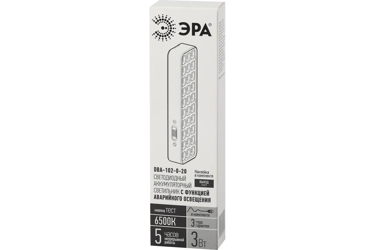 ЭРА DBA-102-0-20 ЭРА Светильник светодиодный аварийный непостоянный 30LED 5ч IP20 выход (40/1920)