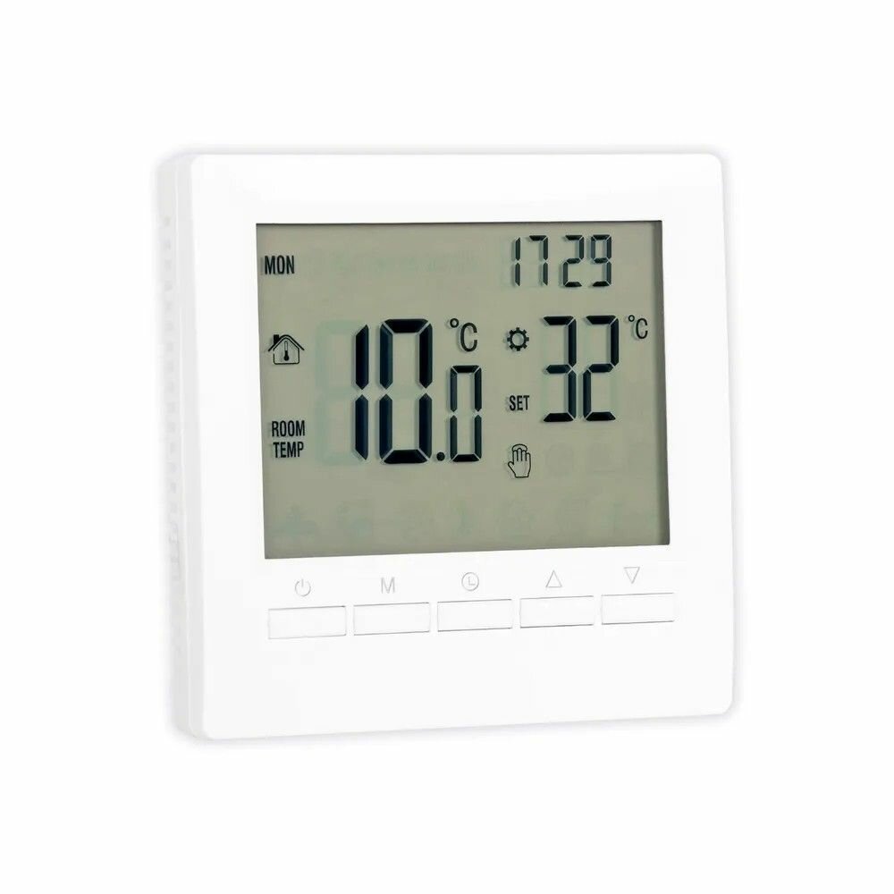 | Дополнительная информация | Двухканальный комнатный термостат для регулирования температуры в помещениях с комбинированными системами отопления (тёплый пол и радиаторы). Программирование расписания. Питание от сети — 220 В. Контакты реле — до 3 А. Температура регулировки — от 5 °С до 60 °С. Точность регулировки — 1 °С. Встраиваемый корпус в подрозетник. Большой LCD-дисплей. Индикация температуры в помещении. Температурный датчик в комплекте |