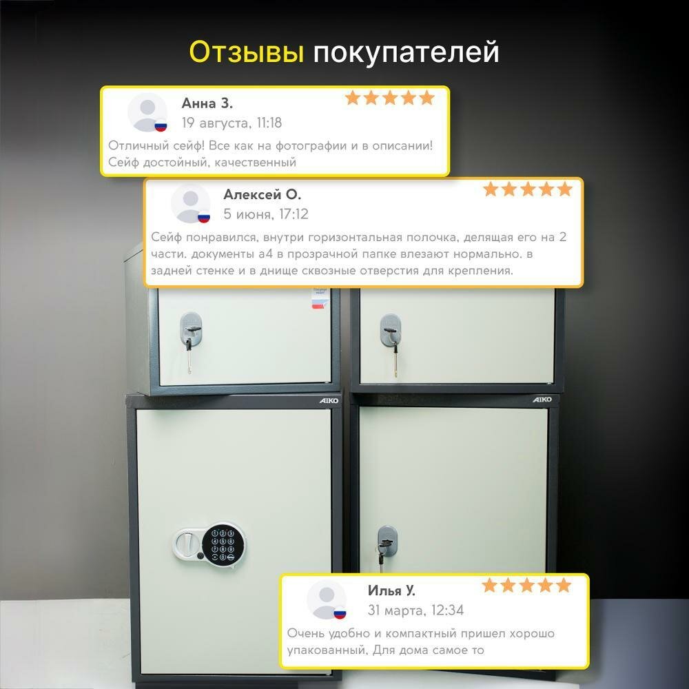 | Отзыв: | Добавьте в комплект к сейфу батарейки! |