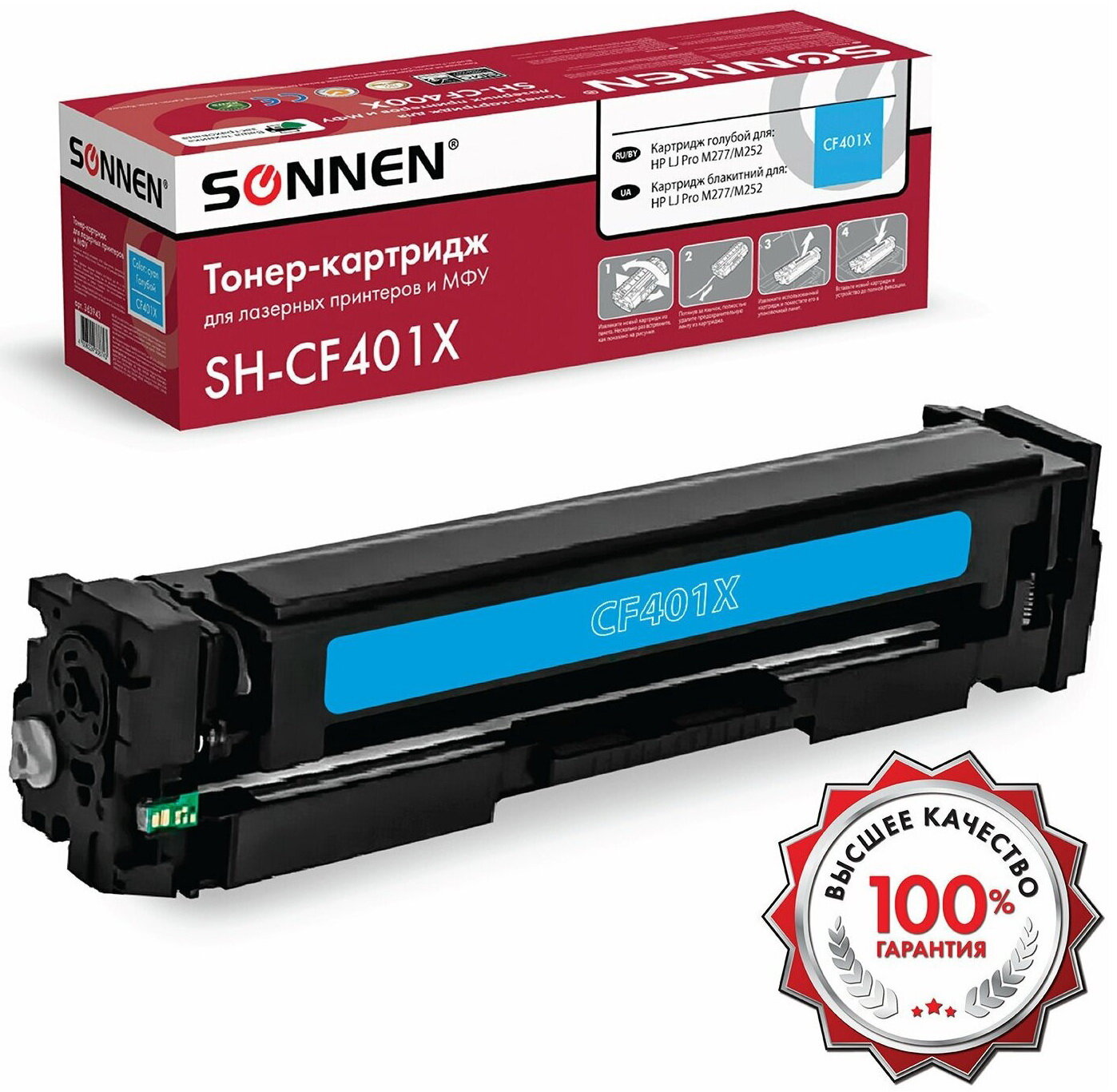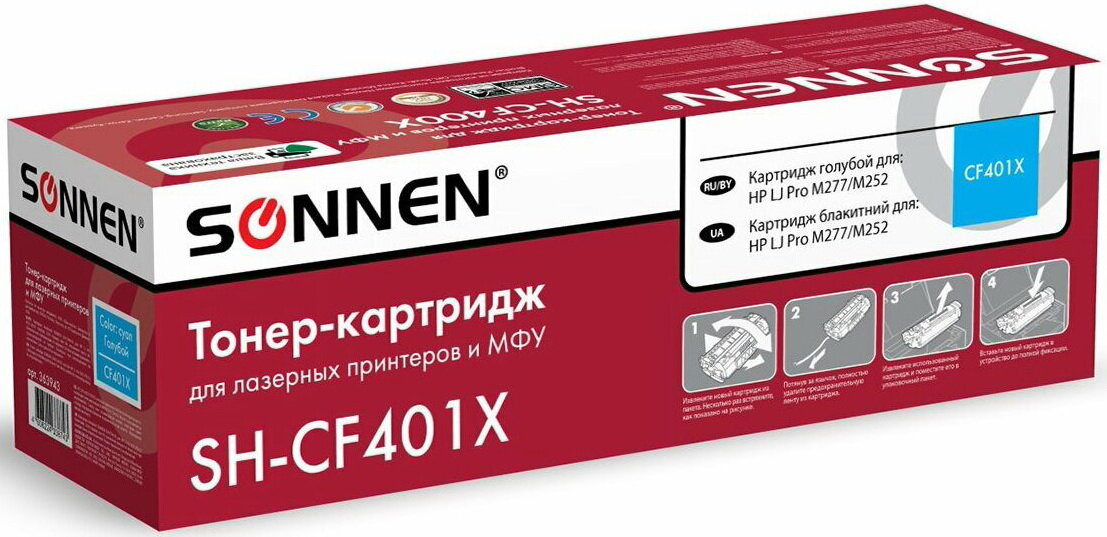 Картридж лазерный SONNEN (SH-CF401X) для HP LJ Pro M277/M252 высшее качество, голубой, 2300 страниц, 363943 (арт. 363943)