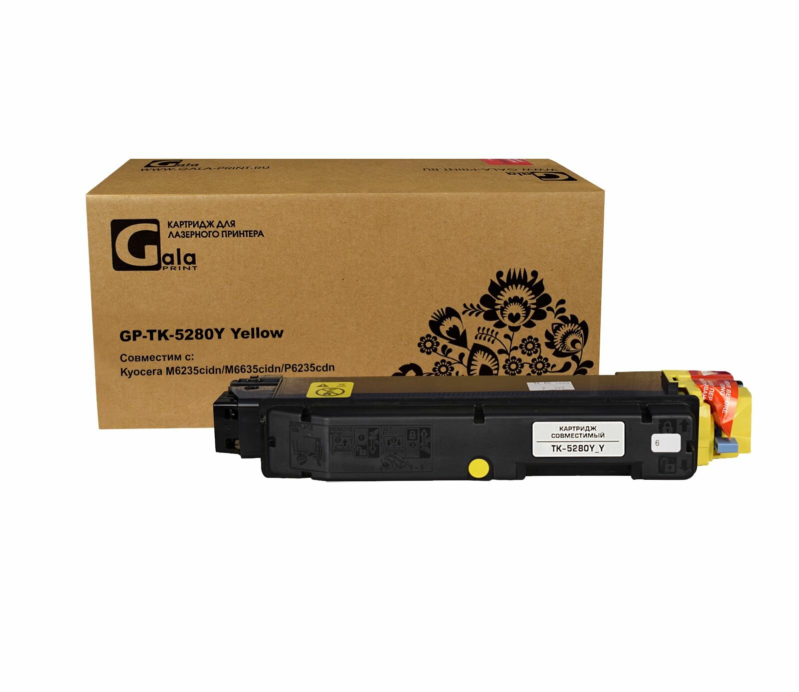 Картридж GP-TK-5280Y для принтеров Kyocera M6235cidn/M6635cidn/P6235cdn с бункером отработанного тонера Yellow 11000 копий GalaPrint