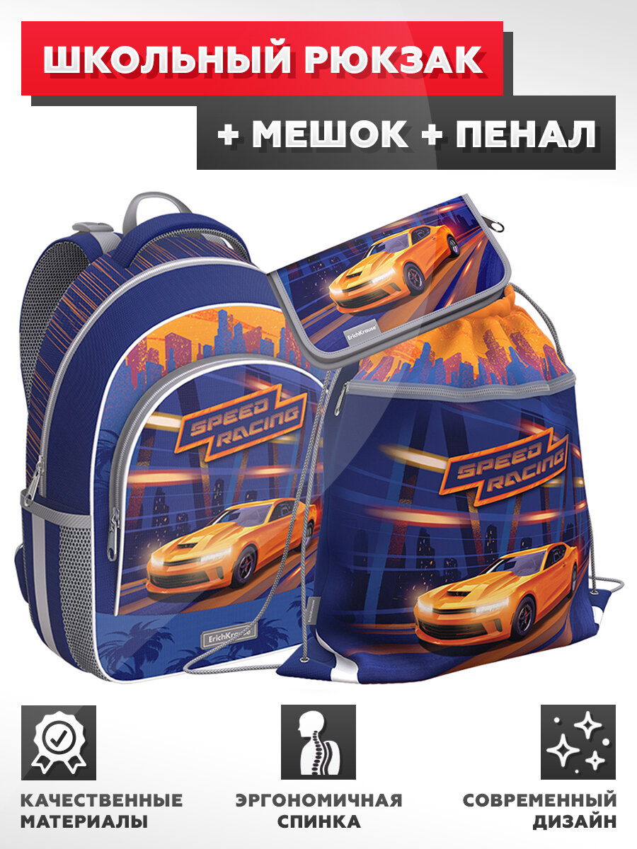Купить Школьный рюкзак с грудной перемычкой ErichKrause - ErgoLine 15L - Sport Car - с наполнением (мешок + пенал)