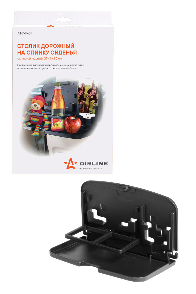 Столик автомобильный Airline, на спинку сиденья, 290x180x230мм, черный, складной, арт. ATC-F-01