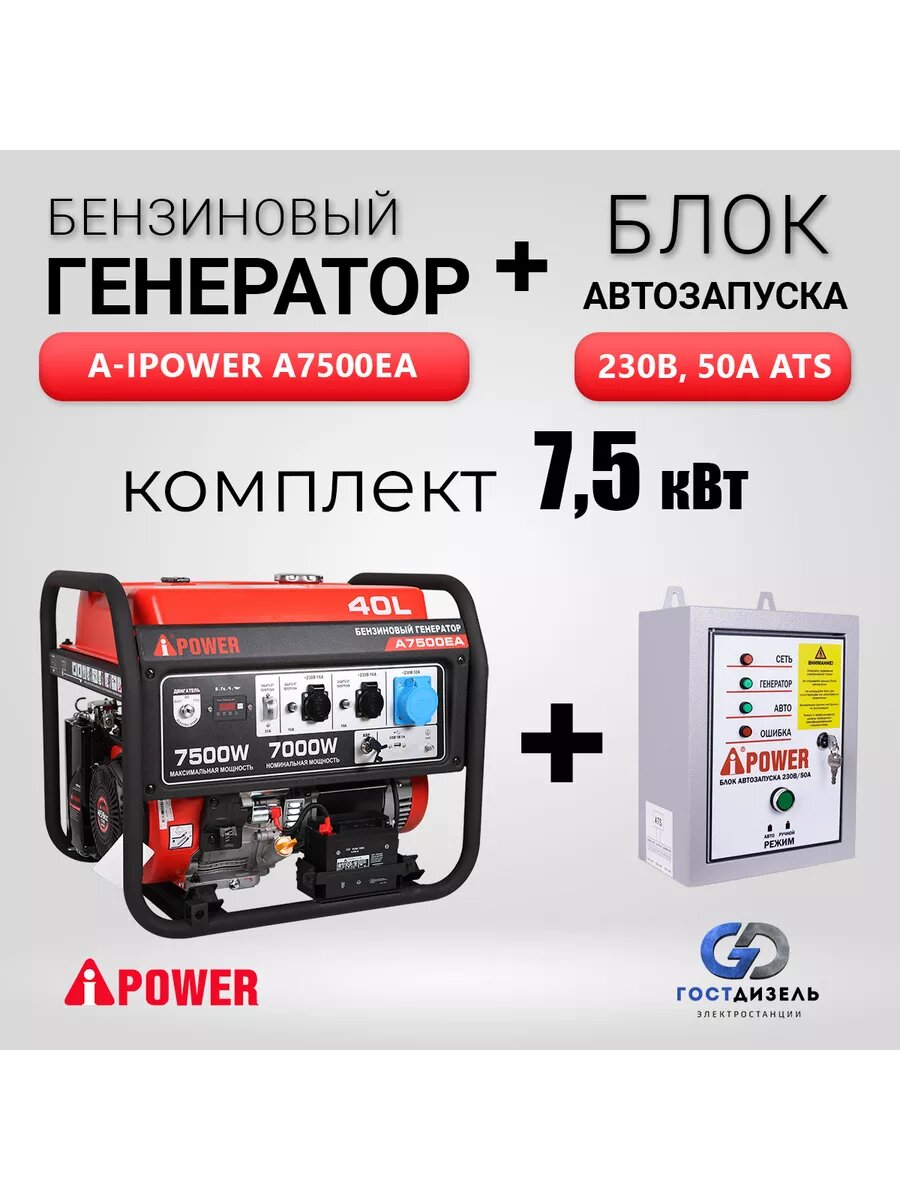 Комплект Бензиновый генератор A-iPower A7500EA (7,5 кВт) + Блок АВР 230 В