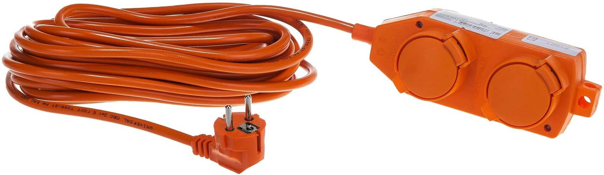 Удлинитель-шнур силовой Сибртех 2 розетки 10м 95881 16А IP44 с/з
