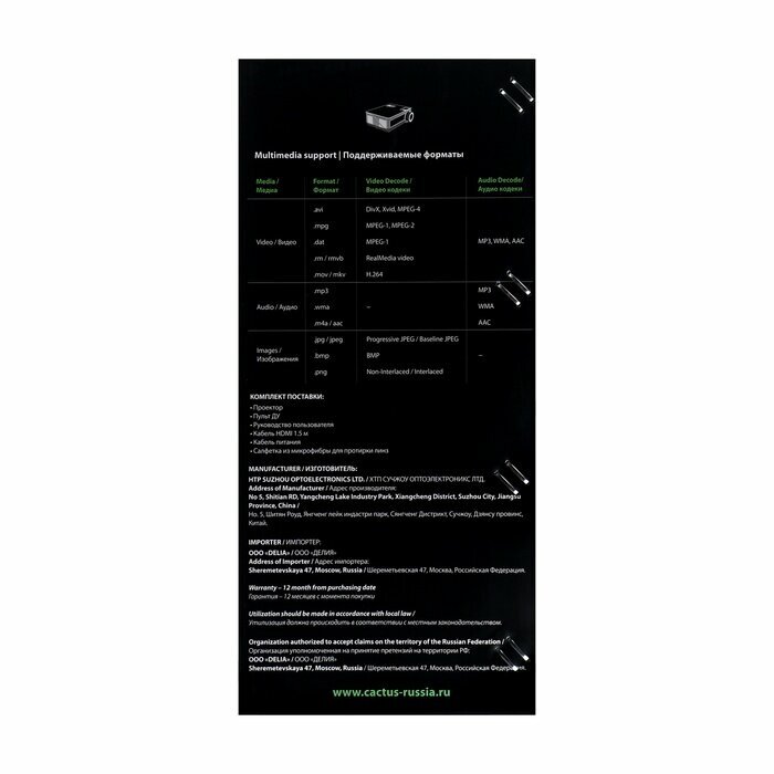 | Мин. проекционное расстояние | 1 м |