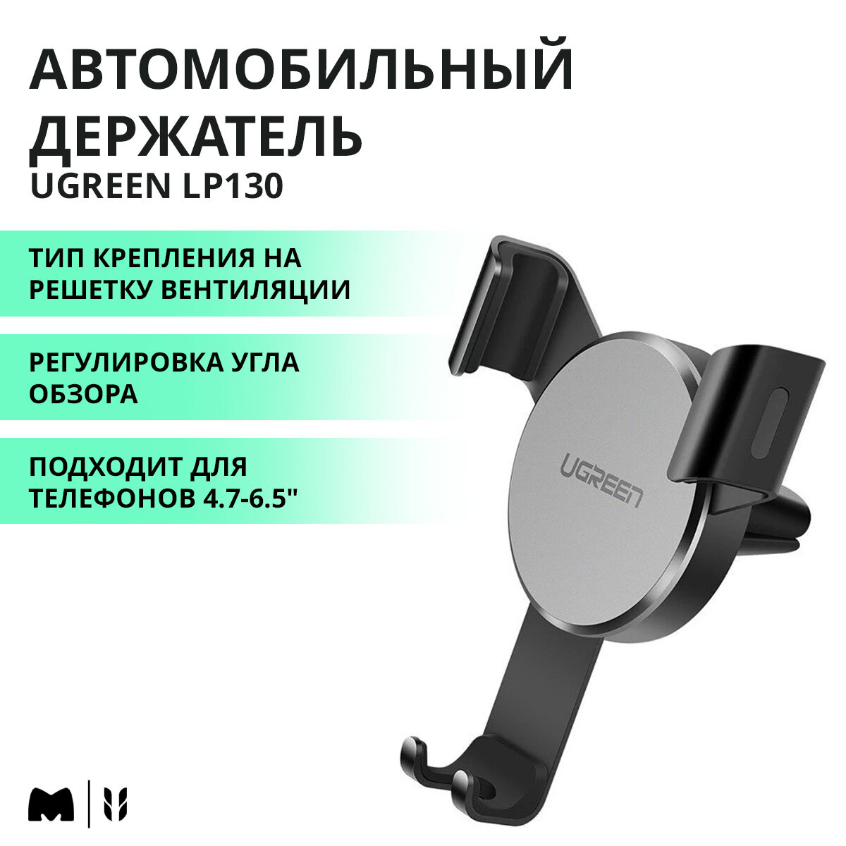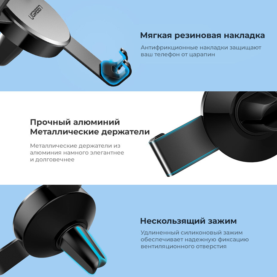 Купить Автомобильный держатель для телефона UGREEN LP130 на ветиляционную решетку, цвет черный (40907)