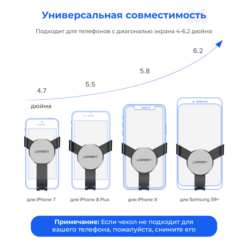 СохранитьАвтомобильный держатель для телефона UGREEN LP130 на ветиляционную решетку, цвет черный (40907) интересное:
