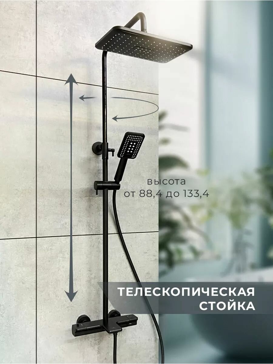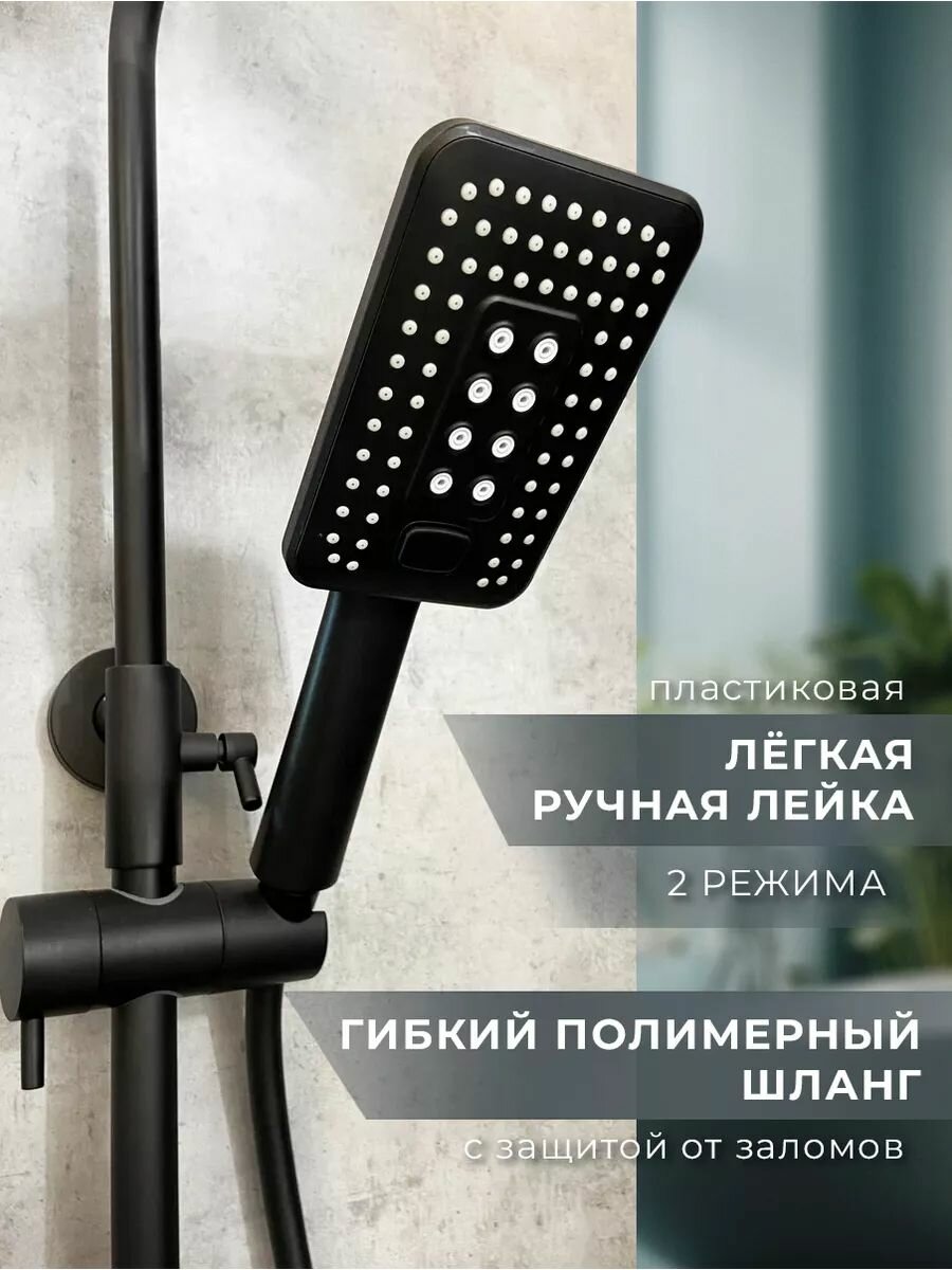 СохранитьAltroBagno Душевая система с тропическим душем и смесителем с термостатом, черная матовая интересное: