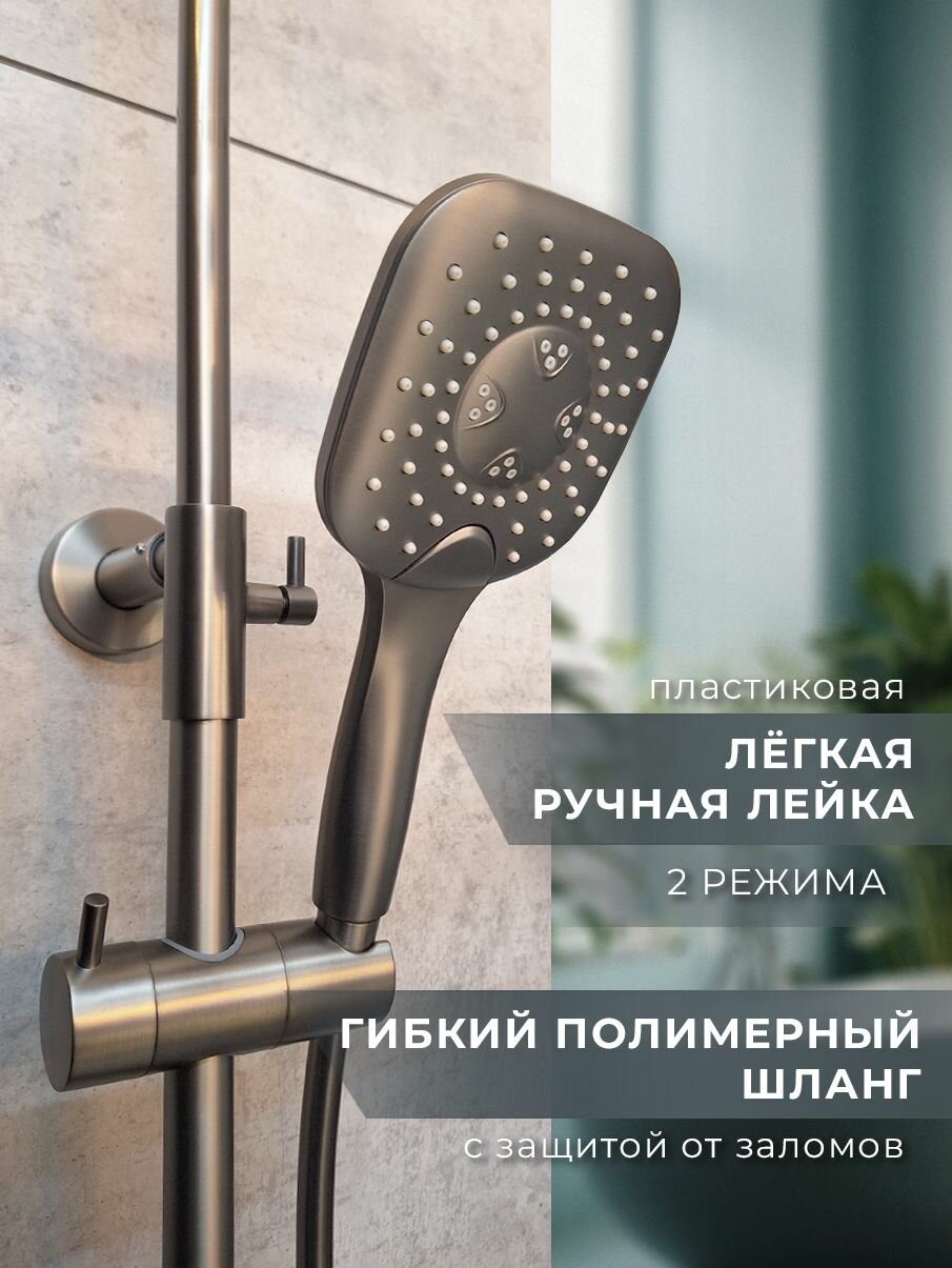 Купить AltroBagno Душевая система с тропическим душем и смесителем с термостатом, оружейная сталь